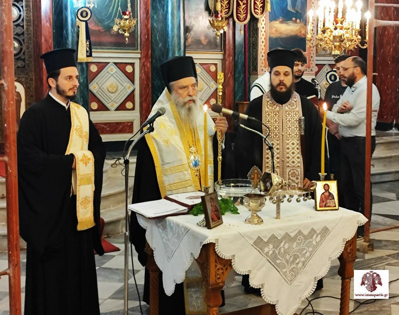 Την ακολουθία του Αγιασμού τέλεσε ο Σεβασμιώτατος Μητροπολίτης μας με την πρέπουσα ιεροπρέπεια. Αμέσως μετά απευθύνθηκε στους μικρούς και τους μεγάλους μαθητές, τους γονείς και τους επίσημους προσκεκλημένους που τίμησαν με την παρουσία τους την έναρξη των μαθημάτων της νέας χρονιάς. Στην αρχή της ομιλίας του αναφέρθηκε στο σπουδαιότερο προσόν που οφείλουν να έχουν οι διάκονοι των αναλογίων και δεν είναι άλλο από το εκκλησιαστικό ήθος. Τόνισε την ανάγκη οι ψάλτες, οι νέοι μάλιστα που προσέρχονται για να υπηρετήσουν την λειτουργική ζωή της Εκκλησίας, να διδάσκονται από δασκάλους των οποίων η στάση, ο λόγος και η εν γένει παρουσία τους στον εκκλησιαστικό χώρο θα μεταλαμπαδεύει σιωπηρά το χρηστό ήθος, τον σεβασμό προς τους ιερείς και την ανυπόκριτη ευλάβεια, παράλληλα με τις μουσικές γνώσεις.