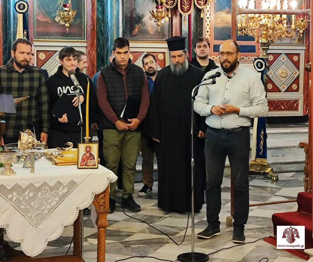 Ακολούθησε εμφάνιση της Χορωδίας εκκλησιαστικής μουσικής, η οποία ερμήνευσε κλασσικά μέλη από την μουσική μας παράδοση. Η σύντομη παρουσία της Χορωδίας άφησε άριστες εντυπώσεις και απέσπασε θερμό χειροκρότημα, όπως έχει συμβεί άλλωστε στις δεκάδες εμφανίσεις της εντός και εκτός Λακωνίας.