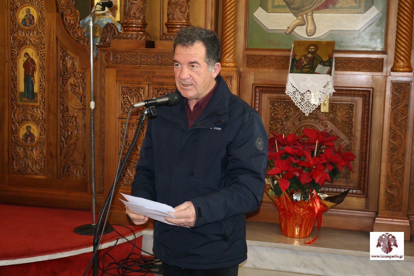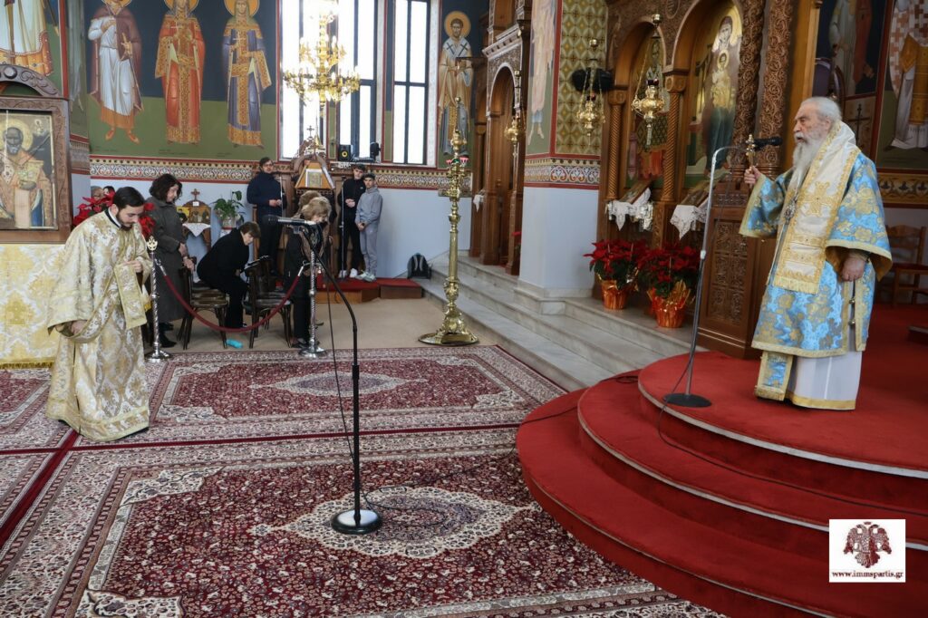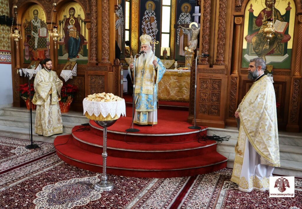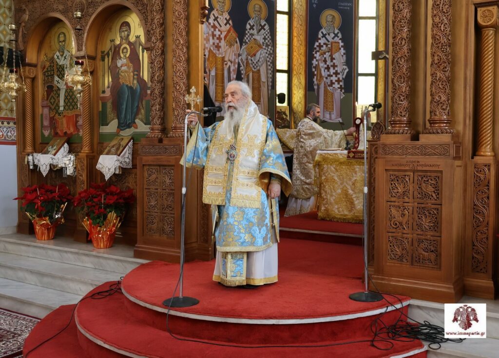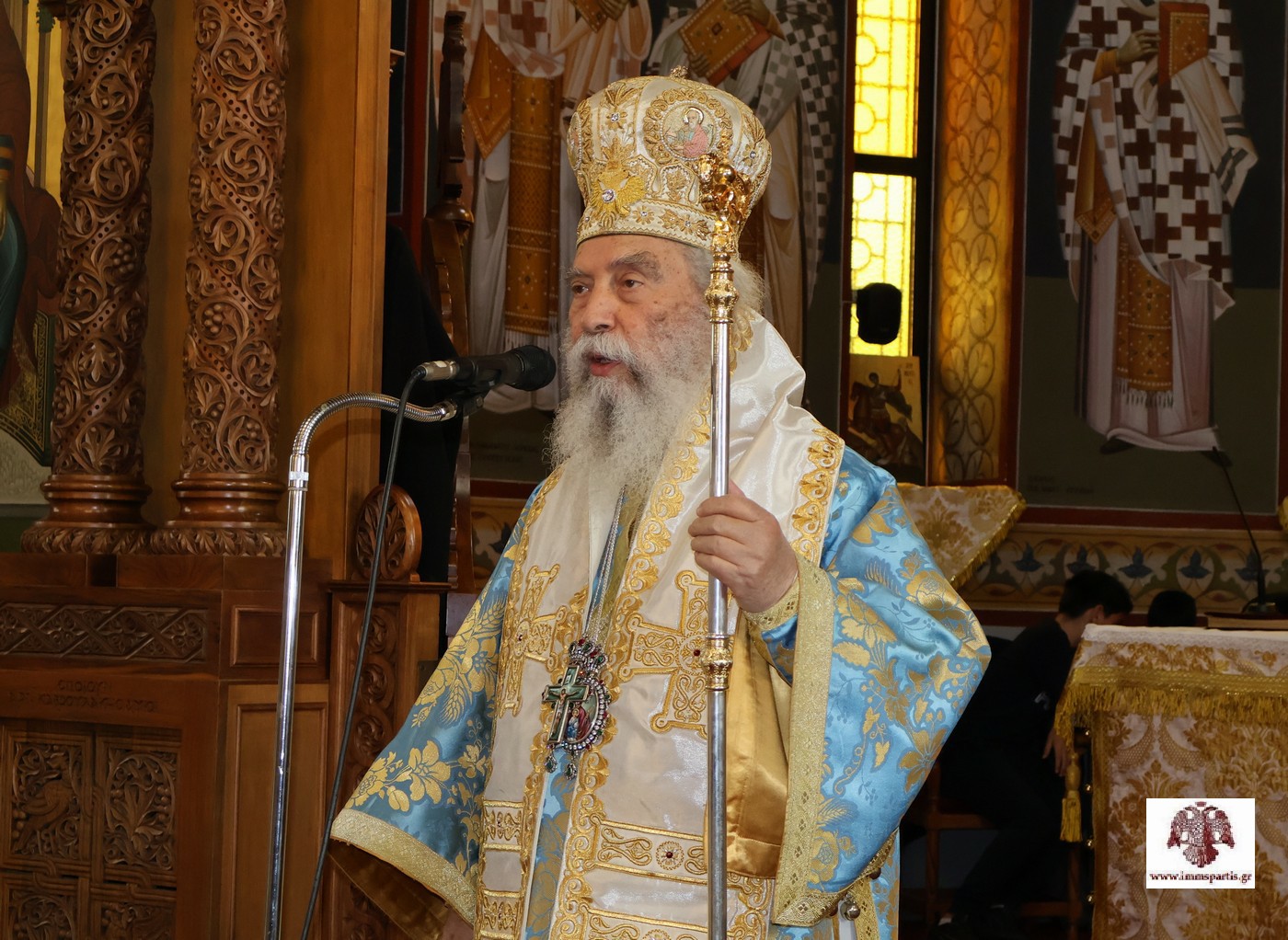 Κατακλείοντας την πανηγυρική λατρευτική σύναξη, ο σεπτός Ποιμενάρχης μας συνεχάρη αρχικά τα παιδιά για την άψογη στάση τους εντός του Ναού. Στη συνέχεια, μίλησε για την πολύτιμη παρακαταθήκη των Τριών Ιεραρχών και για την ανάγκη να επικεντρώσουμε στις πάντα επίκαιρες διδαχές τους, ώστε να επανέλθουμε στον δρόμο της αρετής. Μάλιστα, παρομοίασε τον σύγχρονο άνθρωπο, με κάποιες μινιατούρες που έχουν μεγάλο κεφάλι, μικρό στήθος και πόδια σαν σπιρτόξυλα, αφού κι αυτός έχει πολλές γνώσεις, φτωχά αισθήματα και πόδια ασθενικά που δεν μπορούν να στηρίξουν τα εγχειρήματά του. Ολοκληρώνοντας, ευχήθηκε σε παιδιά και εκπαιδευτικούς να έχουν υγεία, ψυχική και σωματική, καθώς και τη χάρη των Τριών Ιεραρχών, έτσι ώστε, σε πνεύμα συνεργασίας, να συντελέσουν στην δημιουργία μίας νέας, ελπιδοφόρας και δημιουργικής κοινωνίας.