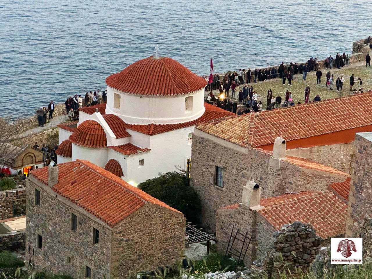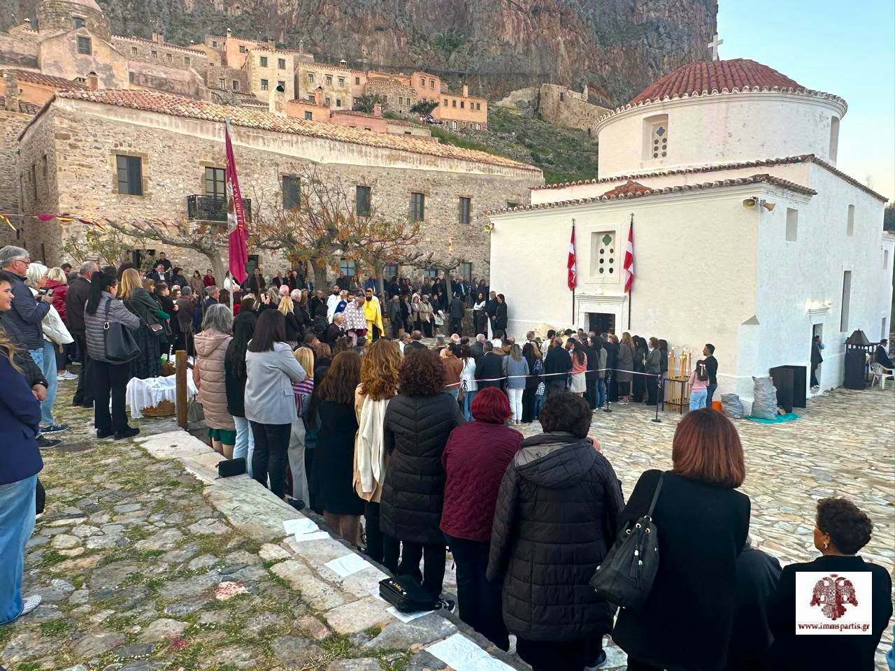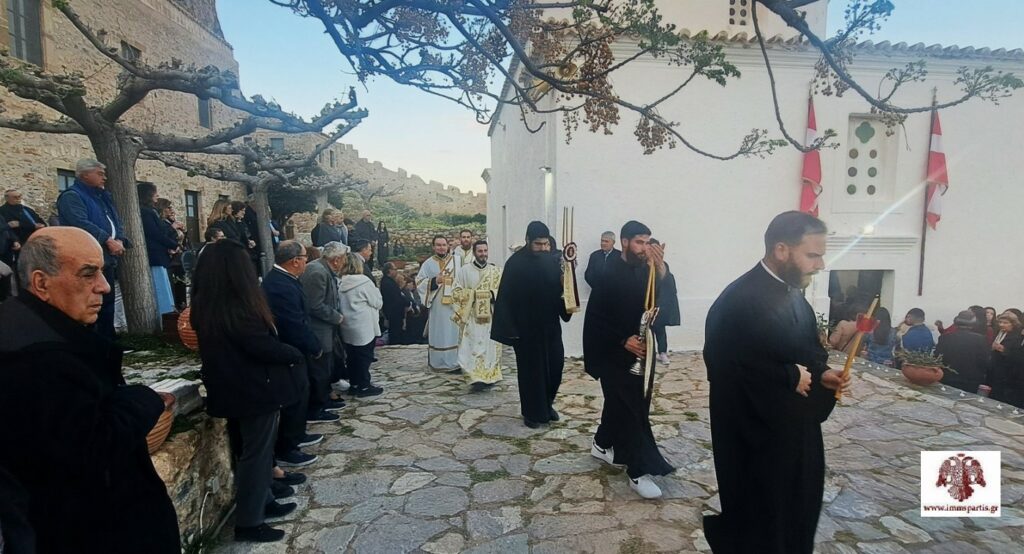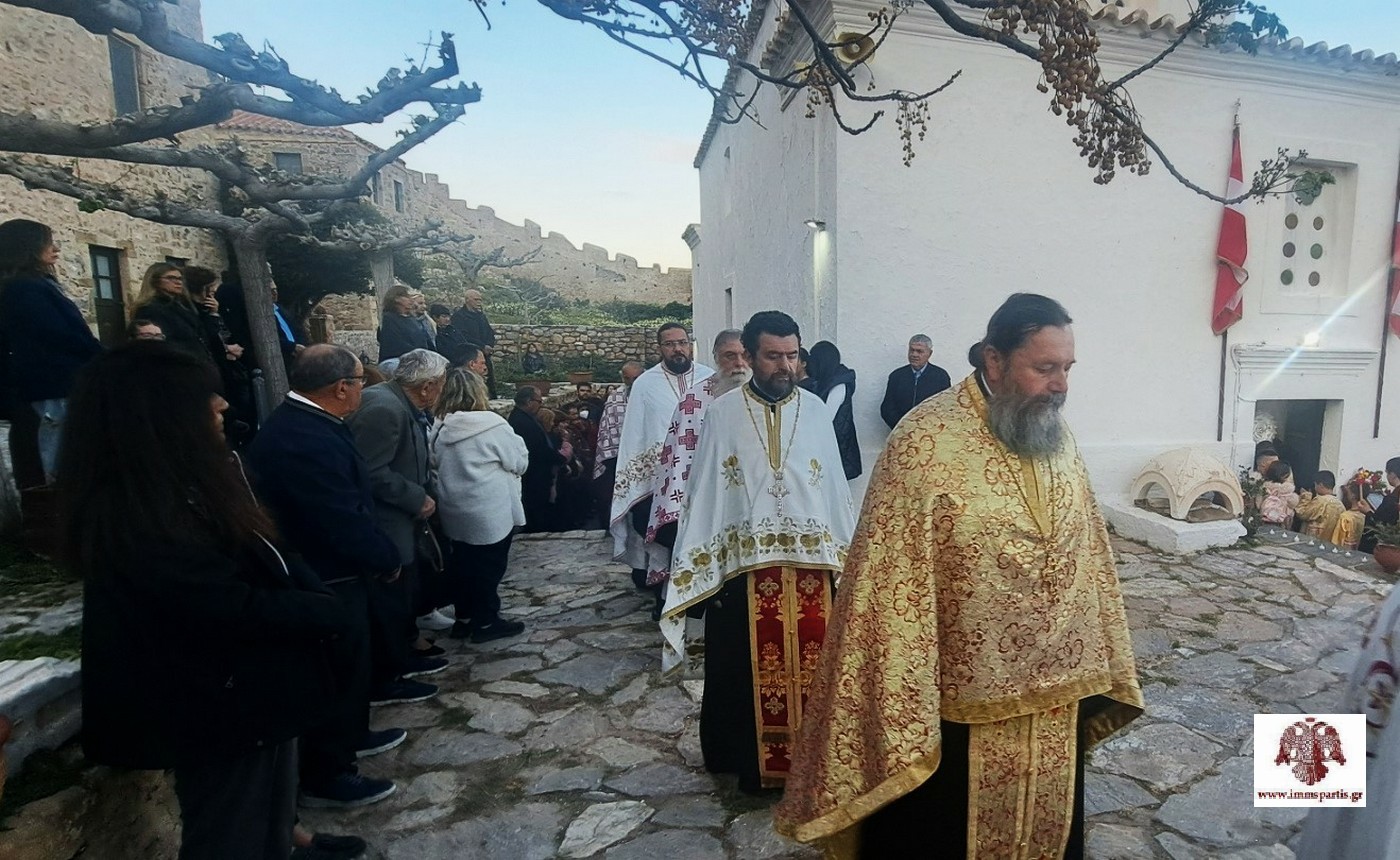 Με εκκλησιαστική μεγαλοπρέπεια εόρτασε και φέτος η Μονεμβάσια την μνήμη της Πολιούχου της, Παναγίας Χρυσαφίτισσας. Το απόγευμα της Κυριακής του Θωμά, 20 Απριλίου 2026, στον φερώνυμο Ιερό Ναό εντός της Καστροπολιτείας, τελέσθηκε ο πανηγυρικός Δισαρχιερατικός Εσπερινός χοροστατούντος του Σεβασμιωτάτου Μητροπολίτη Μαντινείας και Κυνουρίας κ. Επιφανίου, ο οποίος ήταν προσκεκλημένος του Σεβασμιωτάτου Μητροπολίτη μας κ. Ευσταθίου. Στον Εσπερινό συμμετείχε πλειάδα κληρικών απ’ όλη την Μητροπολιτική μας περιφέρεια, ενώ συμπροσευχήθηκε πλήθος πιστών από την ευρύτερη περιοχή, αλλά και επισκεπτών του ευλογημένου αυτού τόπου.