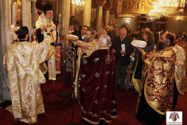 Ακολούθως, μίλησε με θερμά λόγια για τον σεπτό Ποιμενάρχη μας, ο οποίος με τον χριστιανικό και λιτό βίο του, τον συνετό λόγο και το πολύτιμο πνευματικό, φιλανθρωπικό και κοινωνικό έργο του, αποτελεί πρότυπο πίστεως, υπομονής, σεμνότητας, ιερατικής διακονίας και θυσιαστικής προσφοράς. Ολοκληρώνοντας, ευχήθηκε στον σεπτό Ποιμενάρχη μας υγεία, σωματική και πνευματική, και μακροημέρευση, ώστε να συνεχίσει να ανοίγει πνευματικούς δρόμους και να στηρίζει  το ποίμνιο της τοπικής Εκκλησίας, αλλά και όσους ακόμα προστρέχουν στο πρόσωπό του για ψυχική γαλήνη και πνευματική καθοδήγηση.