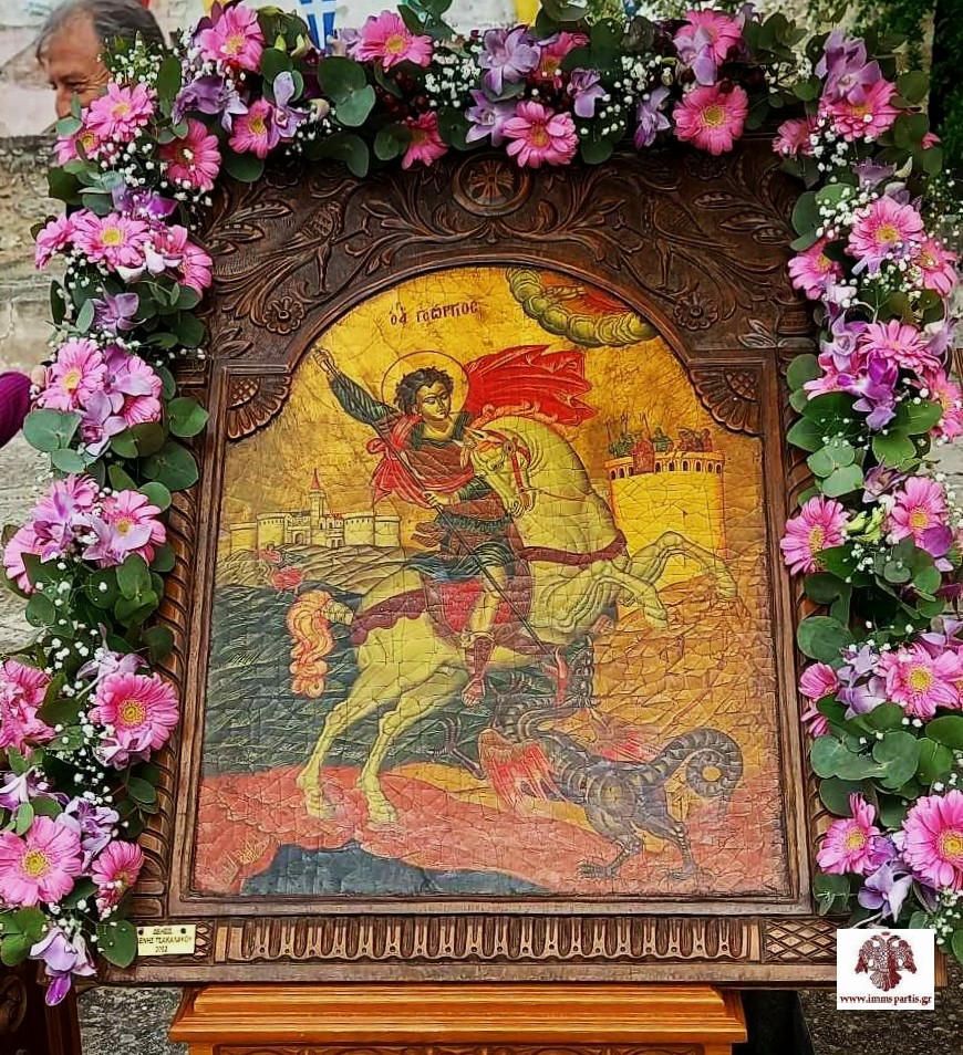 Με εκκλησιαστική λαμπρότητα εορτάστηκε η μνήμη του Αγίου Γεωργίου του Τροπαιοφόρου στον ιστορικό φερώνυμο Ιερό Ναό στην Πανηγυρίστρα Σκάλας.
