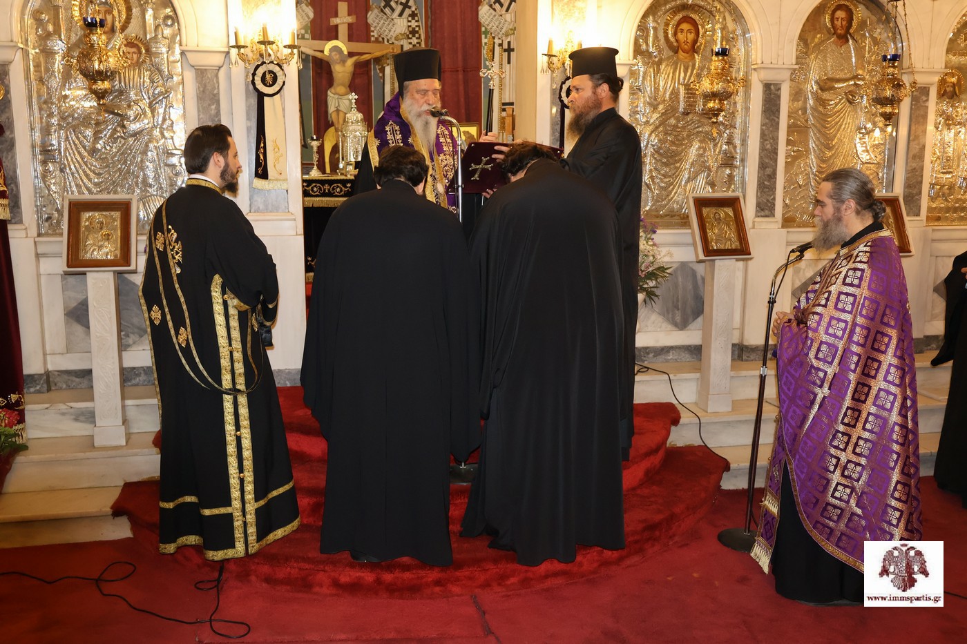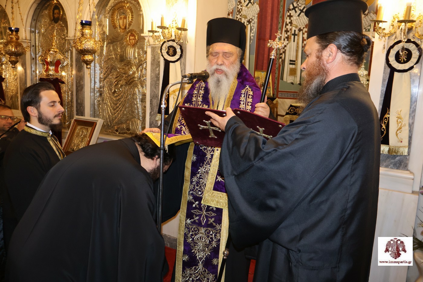 Πριν το πέρας της εσπερινής κατανυκτικής ακολουθίας, ο σεπτός Ποιμενάρχης μας χειροθέτησε Πνευματικούς τους Πανοσιολογιώτατους Αρχιμανδρίτες και μέλη της αδελφότητας της Ι.Μ. Αγίων Αναργύρων Πάρνωνα, πατέρες Λεόντιο Βαρδάκη και Νικόδημο Καρκαμπάση. Νωρίτερα, ο Σεβασμιώτατος είχε μιλήσει αρχικά για την εξέχουσα σημασία της πνευματικής πατρότητας, επισημαίνοντας ότι οι Πνευματικοί θα πρέπει να διακρίνονται από βαθιά πίστη, συνετό λόγο, εμπειρία ζωής και διακριτικότητα. Παράλληλα, μίλησε και για το Μυστήριο της Ιεράς Εξομολογήσεως, στο οποίο οι πιστοί θα πρέπει να προσέρχονται με απόλυτη συνείδηση, κατάλληλη προετοιμασία και διάθεση διόρθωσης των αδυναμιών τους μέσω της πνευματικής αναγέννησής τους.