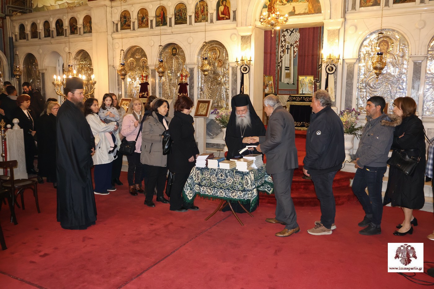 Ο Κατανυκτικός Εσπερινός ολοκληρώθηκε με τον Σεβ. Ποιμενάρχη μας να προσφέρει, ως ευλογία, βιβλία πνευματικής οικοδομής σε κληρικούς και λαϊκούς.